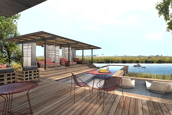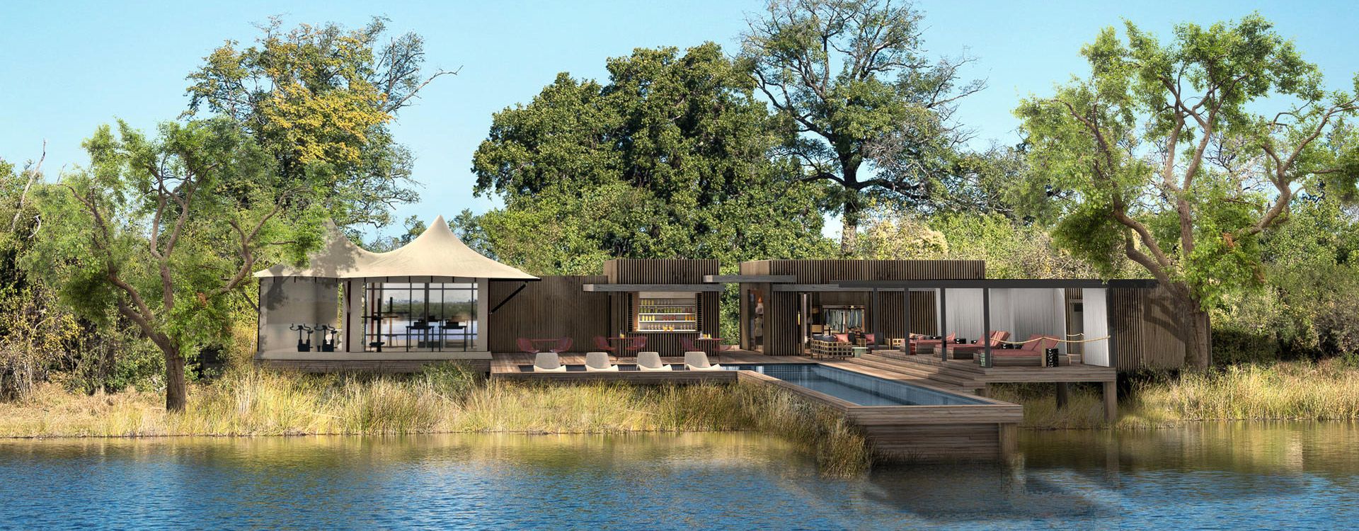 DumaTau is located in the private Linyanti Wildlife Reserve on the western boundary of Chobe National Park in northern Botswana. It is 45 minutes from Kasane International Airport followed by a 30-minute drive.