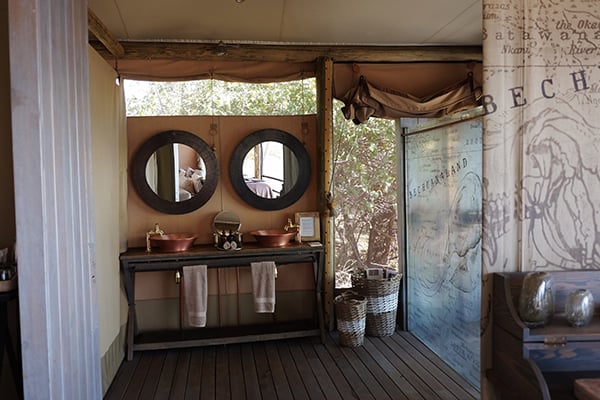 There are eight twin and two family tents each featuring contemporary décor, whitewashed wooden floors, natural-coloured furnishings, an ensuite bathroom with his and hers copper basins; and a verandah. These canvas tents are light and airy and feature.