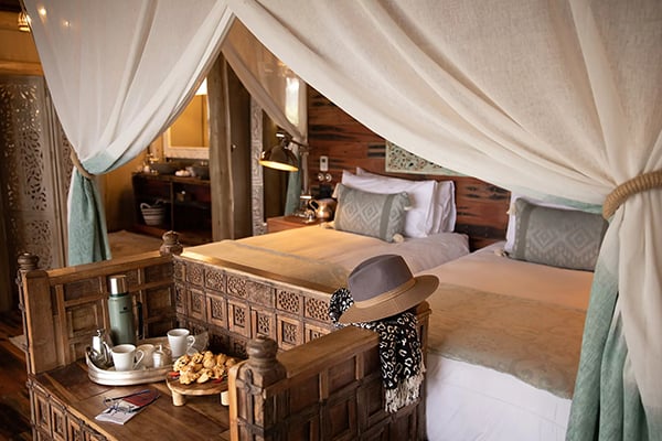 It offers two suites with double or twin configurations, and guests can also reserve a separate 2-bedroom Sitatunga Private Island Suite. One guide room has two three-quarter beds and a shared en-suite bathroom. The maximum accommodation capacity for Sitatunga Private Island is four guests, not including the Sitatunga Private Island Suite.