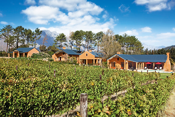 At the centre of a private 30-acre estate in the heart of the South African winelands, La Residence sits in the Franschoek valley at the foot of spectacular mountains, surrounded by vines.