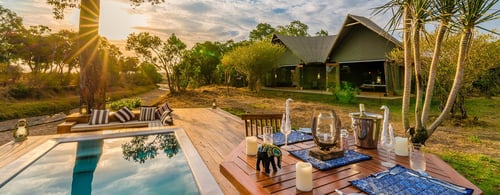 Back at the camp, eat bush breakfasts next to the river, watch elephants and lions drink at the natural spring, take a refreshing dip in the pool, and sip sundowners.