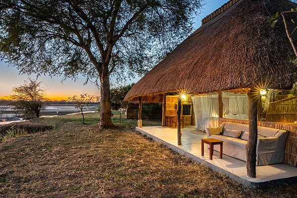 A lovely thatched chitenje acts as the centre of camp. Located on a wooden deck overlooking the grazing lawn that leads down to the two rivers, it's a perfect spot in which to relax and watch the river and the wildlife meander by.