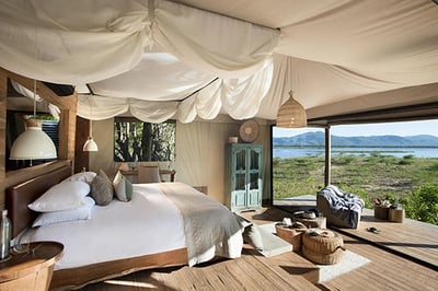 This safari camp features six luxury tented suites with stunning river and escarpment views, offering a romantic escape to nature. Each guest tent is elegantly appointed with air-conditioning, indoor/outdoor showers, a private viewing deck, and a plunge pool. Thoughtful charging points are provided for your cameras. Experience the serene rhythm of river life while enjoying the sights and sounds of Africa's wilderness from the cosy bar or refreshing pool.