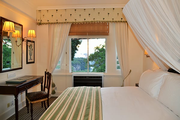 The Victoria Falls Hotel comprises 143 rooms and 18 suites across a number of categories ranging from 20-sqm Standard Rooms to the magnificent Presidential Suite. Each room features traditional Edwardian-style décor, fine wood furnishings, a bathroom with a huge Edwardian bathtub, and all-modern amenities. Suites add 4-poster beds, marble bathrooms and living rooms with river views. Some also come with private courtyards. Interconnecting rooms are available for families.