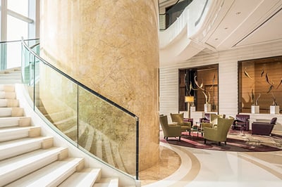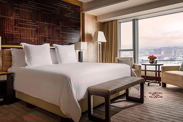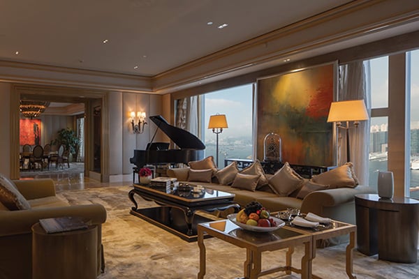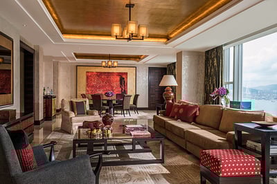 The spacious rooms and suites have picture windows overlooking the harbor or peak. Guests can opt for Western or contemporary Chinese style décor, all featuring marble bathrooms and cutting-edge technology. This is a first-class property with views to match – make sure you catch the panorama of the city from the top of the hotel.