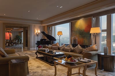The spacious rooms and suites have windows overlooking the Victoria Harbour or The Peak. Guests can opt for Western or contemporary Chinese style décor, all featuring marble bathrooms and cutting-edge technology.