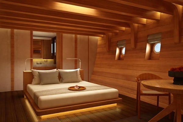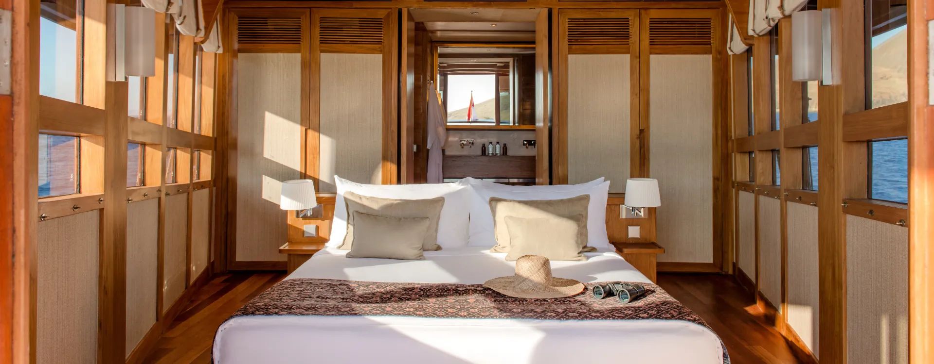 Amandira is a 52-meter, two-masted Phinisi yacht handcrafted by shipbuilders of the Indonesian Konjo tribe. Guests can sail through the UNESCO protected Komodo National Park and come face to face with Komodo dragons, or sail through Raja Ampat, one of the world’s most diverse and incredible marine areas. Journeys can also be customized depending on your preferences.
