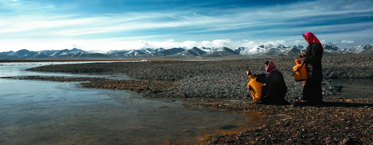 1 Women gathering water at a lake, luxury holidays to Tibet