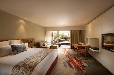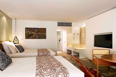The hotel comprises 228 spacious and tastefully appointed rooms and suites: 33-sqm Superior Rooms, 36-sqm Terrace Rooms, and 77-sqm Deluxe Suites, which come with multiple terraces and a spa bath. Each room features a comfy king-size or queen beds, Aboriginal artwork, and all modern amenities. Interconnecting rooms are available.