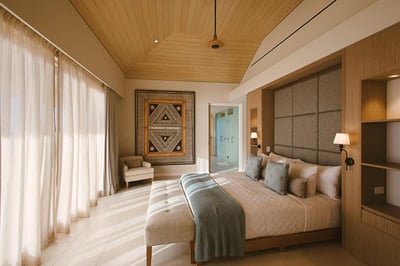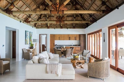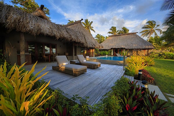 Accommodation is in 20 beachfront villas or five luxury residences. The sustainably designed buildings feature open-plan living areas with subtle Fijian touches, indoor/outdoor bathrooms, and tropical walled gardens with a private infinity pool and sundeck.