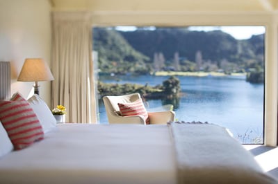 Super-relaxing, Solitaire Lodge is the second oldest lodge in New Zealand and offers a luxurious, peaceful retreat overlooking Lake Tarawera. The property boasts a rustic feel which is complemented by modern features and furnishings – the beds are especially comfortable. Dining is a dream, and guests are invited to mingle over apéritifs and canapés before dinner.