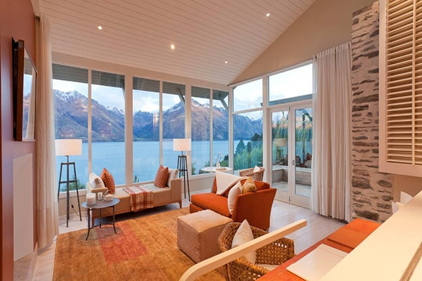 Get up early at Matakauri Lodge and head to the gym for sunrise. The fitness center overlooks the hotel’s infinity pool, which in turn overlooks Queenstown's Lake Wakatipu and the snow-capped Remarkables mountains – you will never have a better view from a treadmill! During the cooler months, enjoy pre-dinner drinks in front of the outdoor fireplace on the lawn before moving into the dining room for dinner. The meals are expertly curated and use some of the finest ingredients in New Zealand.