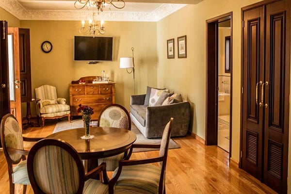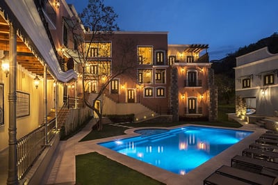 Located in a peaceful neighborhood outside of Guanajuato’s bustling center, Villa Maria Cristina boasts French-style architecture and makes for an intimate and peaceful stay in refined surroundings. The suites have a period charm with lofty ceilings, French-style furniture, polished wooden floors, and plush bedding. There’s also a nicely presented swimming pool and inner patio which is super-serene. Spa treatments are also available.