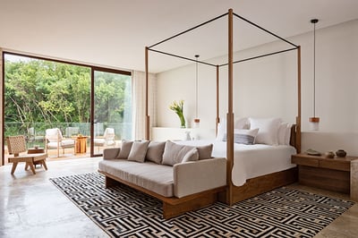 Inspired by Mayan traditions, Rosewood Mayakoba provides 130 spacious and ultra-stylish suites made from Yucatán limestone and renewable woods. All suites overlook lagoons, mangroves, or the sea, and feature contemporary furnishings, a private plunge pool, a rooftop sundeck, an outdoor shower, and butler service. Most also have their own private dock. Interconnecting accommodation is available.