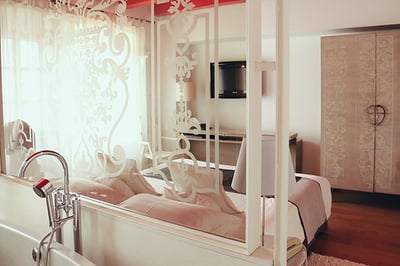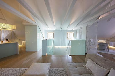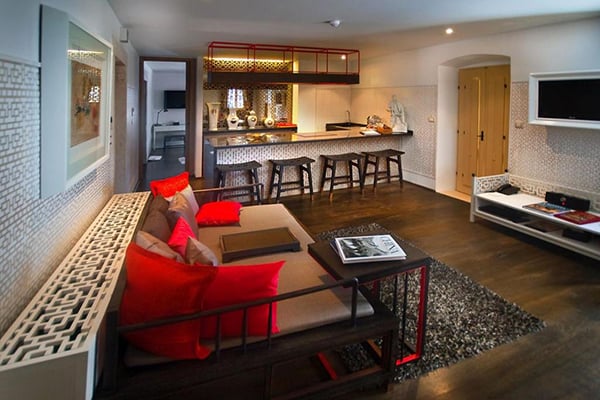 Each apartment is named after the voyages of Marco Polo, believed to have been born here. Offering between one and three bedrooms, they’re a blend of old and new, with stone lintels and wooden-beamed ceilings alongside modern furniture and open-plan bathrooms with freestanding tubs.