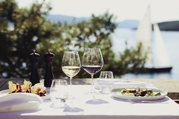 Breakfast is served on the restaurant terrace overlooking the Adriatic Sea. Guests can feast on locally sourced meat and seafood, or prepare food in their fully equipped kitchens.