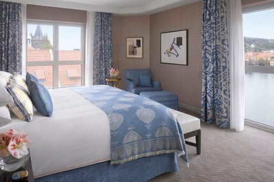 The hotel’s 157 guestrooms and suites fuse Old World grandeur with modern amenities. Rooms reflect the individual building’s character, ranging from modern to neo-classical, although comfortable king-size beds, luxurious linens, and marble en suites are present throughout. Premier rooms and suites guarantee views of the city’s landmarks, including the Charles Bridge, River Vltava, and Prague Castle.