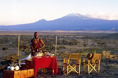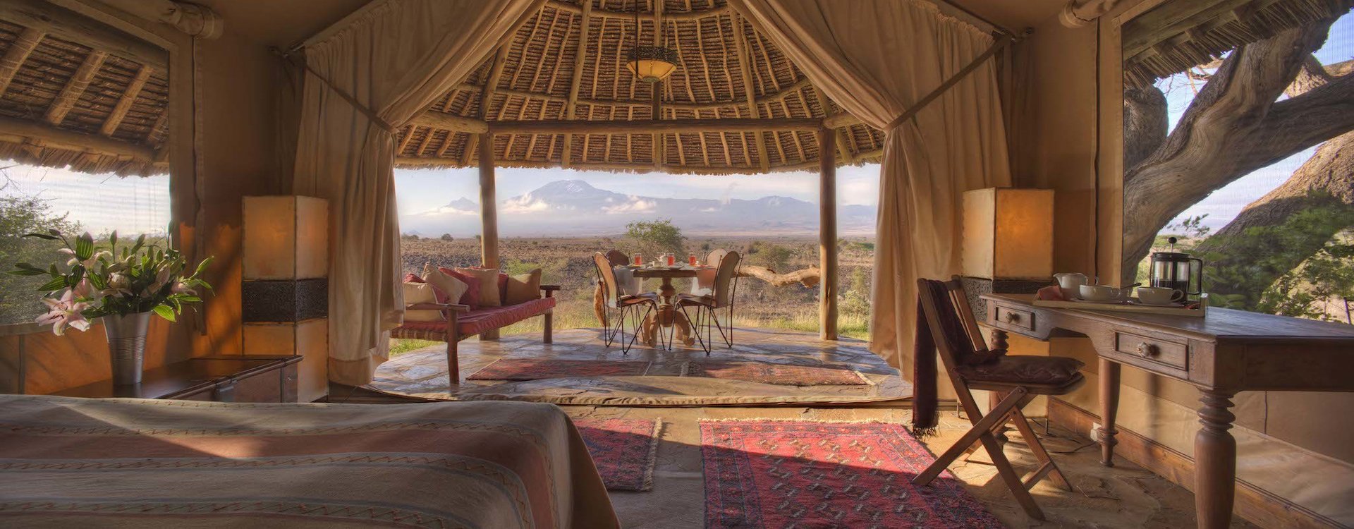 Stay ay Tortilla Camp in Kenya's Maasai Mara for elegant accommodation and endless views stretching to the snow-capped Mount Kilimanjaro and Mount Meru in Tanzania. Make the most of the prime position on a hill and the camp’s own waterhole which guests can observe from the dining area and bar. There’s also a swimming pool, and massages are available and most welcome after an adventure-filled morning of wildlife viewing.