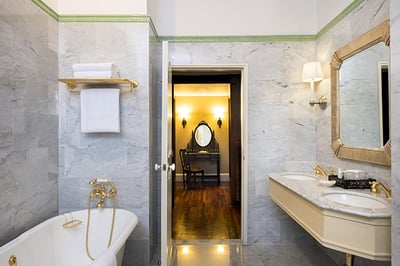The rooms and suites reflect a bygone era with high ceilings, antiques and original artworks, and opulent en-suites with clawfoot bathtubs.