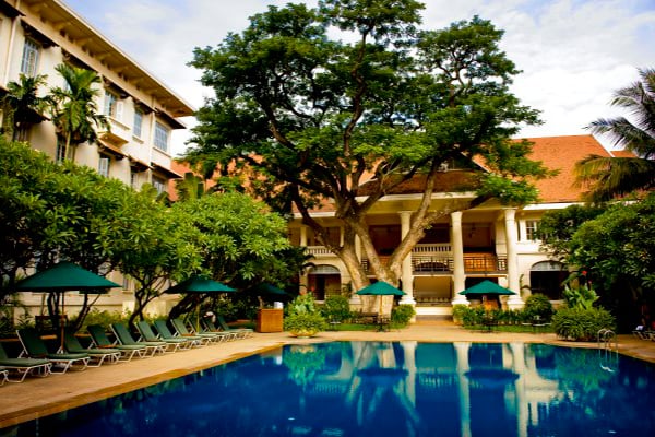 The restaurants offer Royal Khmer and international cuisine, while the Apsara Terrace holds nightly live music and dance performances during dinner. The colonial-era Elephant Bar serves great cocktails, including the Femme Fatale, concocted for Jackie Kennedy.