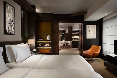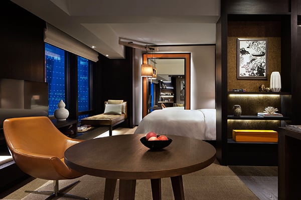 Rosewood Beijing comprises 283 rooms and suites across a number of categories starting with the 45-sqm Deluxe Room. Each one features dark wood furnishings, original cloisonné paintings, fine art prints, floor-to-ceiling windows, a comfy bed with Frette linens, a lavish bathroom with a TV, and state-of-the-art amenities. Club Room guests benefit from access to the Manor Club. Some suites come with a massage table or oversized bathtub and a balcony. Family accommodation is available.