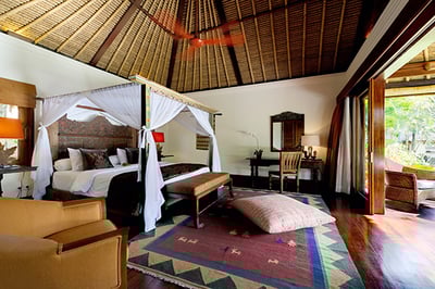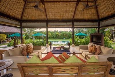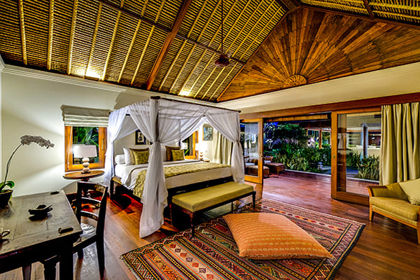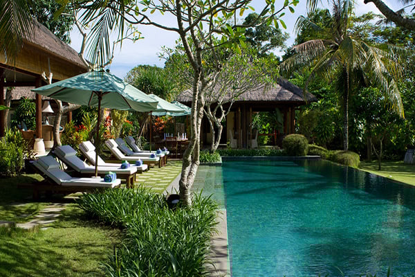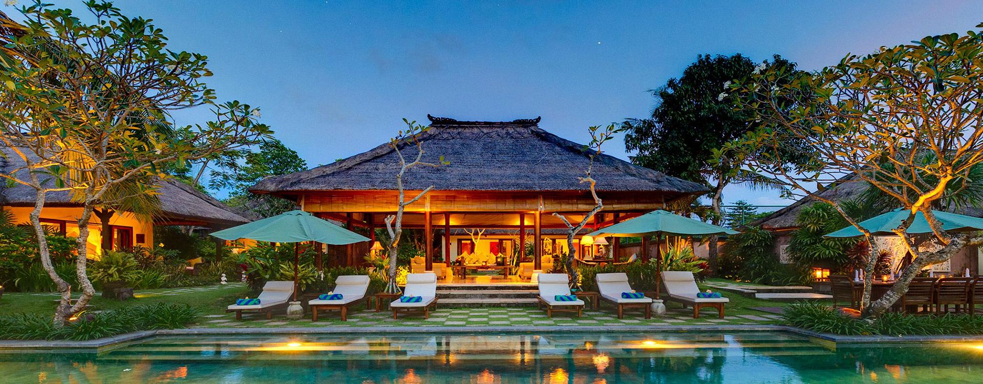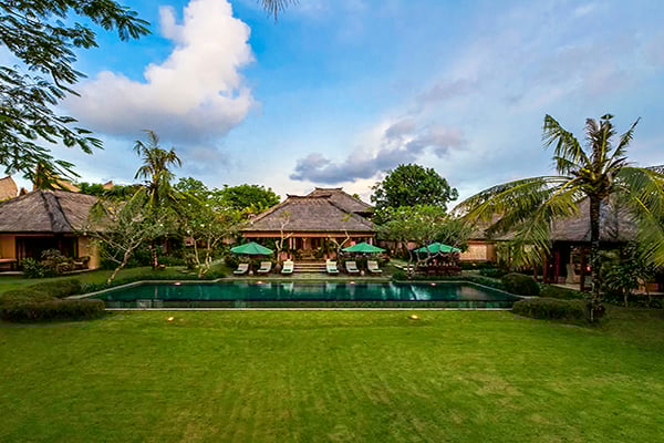 Designed like a Balinese family compound, this property is a stunning example of early Bali style, with open-sided living areas and air-conditioned en suite bedrooms with all mod cons. There’s an impressive 18-meter swimming pool at its center. It’s great for families and special occasions, comes fully staffed, and is close to local restaurants, nightlife, and the beach.