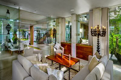 If you’re looking for something a little more remote and private, Villa Vedas in Tabanan, Bali is as good as it gets. Ideal for groups of friends, the villa not only has two pools but also a sky pool and a floating staircase which makes the villa feel more like a work of art than a place to stay. The unobstructed views of the ocean and paddy fields are really special, and the poolside bar is another very attractive addition if you’re there for a special occasion.