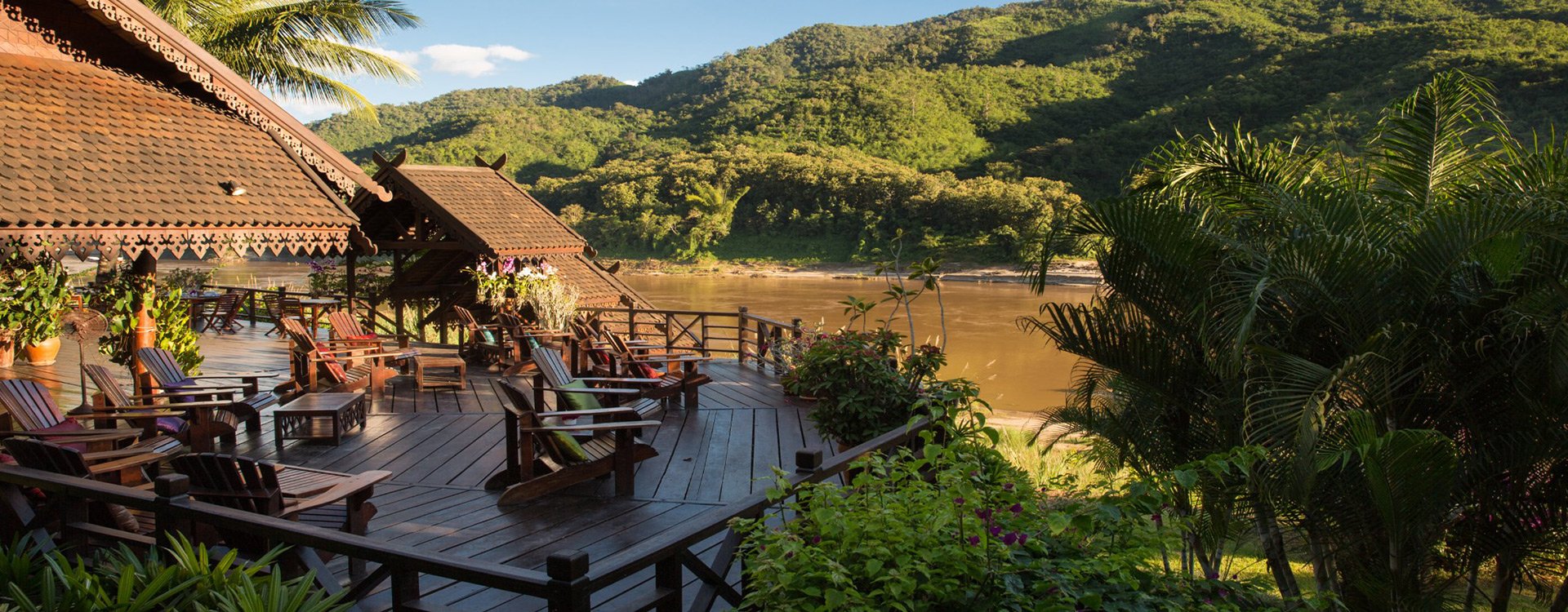 Constructed from rosewood and teak, the 20 pavilions have a simple, rustic charm with dark wooden furniture and crisp, white fabrics. Inside, there are mosquito nets, a ceiling fan, and bathroom with hot shower and Western-style toilet, while picture windows offer magnificent views of the river and mountains.