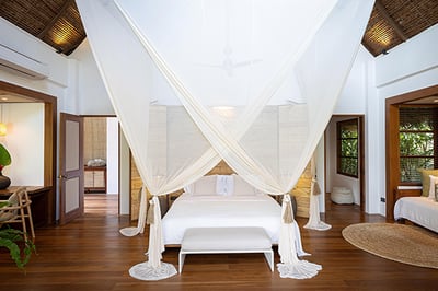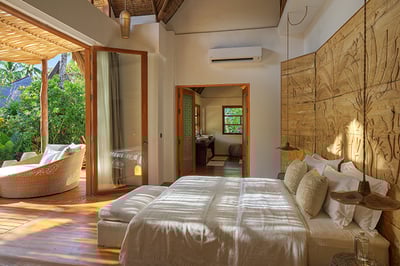 Perlah Villa: A state-of-the-art 4-bedroom ocean-view villa (one convertible into a cinema room) with 3 bathrooms, a private pool, secluded beach access, a stunning dining pavilion, indoor and outdoor lounges, plus an exceptional treehouse lounge overlooking the ocean. It is an exclusive and welcoming haven for couples, families, and friends.