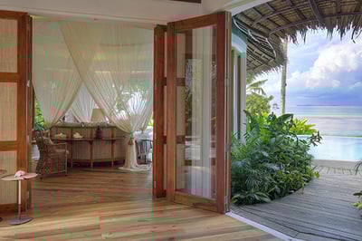All ten villas, including Deluxe Villas with unparalleled ocean views, are tranquil and airy, featuring indoor-outdoor showers and expansive glass walls to invite in natural light.