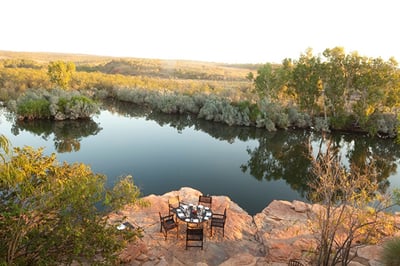 Dining is inclusive and features gourmet meals showcasing produce from the Ord River Valley. Evening meals are served at the communal table or one of three private locations overlooking the gorge.