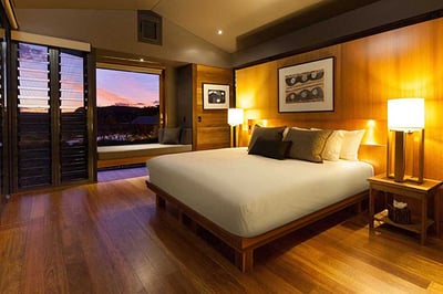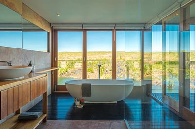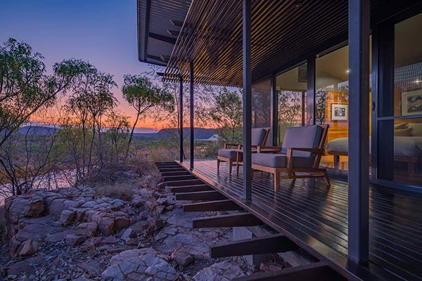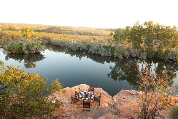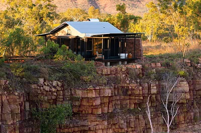 The rooms are startlingly unique. Nine stylish rooms and suites blend contemporary furniture with rustic authentic pieces and indigenous artworks. The Chamberlain Gorge Suite is particularly impressive as it hangs over the gorge and boasts fantastic views. Evening meals are served at the communal table or one of three private locations overlooking the gorge.