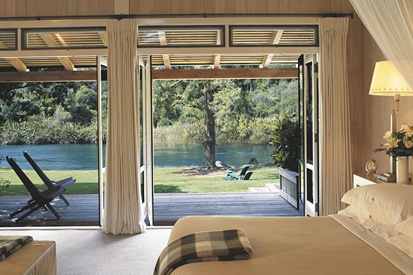 Located on the banks of the Waikato River and set within 17 acres of manicured grounds, Huka Lodge is one of New Zealand’s finest. This Relais & Chateaux property is in an area of sublime natural beauty on the outskirts of Lake Taupo and offers world-class food and amenities alongside exquisite personal service.