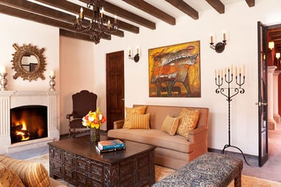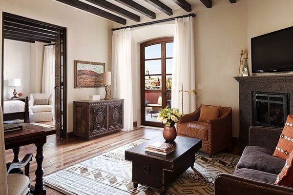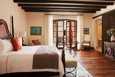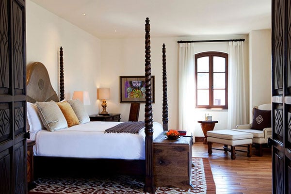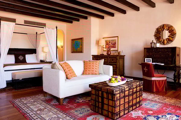 The guestrooms and suites exude Spanish colonial style with polished wooden floors, beamed ceilings, and dark wooden furniture. Modern local artworks adorn the walls, while the marble en suites house deep bathtubs and separate showers. All rooms have private balconies or terraces, many with vistas of the city.