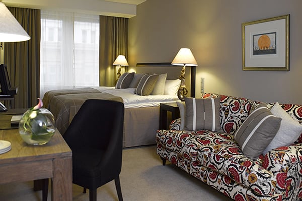 Hotel Haven prides itself on homely comfort and service. A member of Small Luxury Hotels of the World, it sits on Helsinki’s South Harbour with views of the harbor, Uspenski Cathedral, and Market Square. The rooms feature luxurious beds, gorgeous bedding, and spa-style bathrooms. The divine Bar Haven lounge has a cheery fireside which is the perfect spot to relax in after a busy day of exploring.