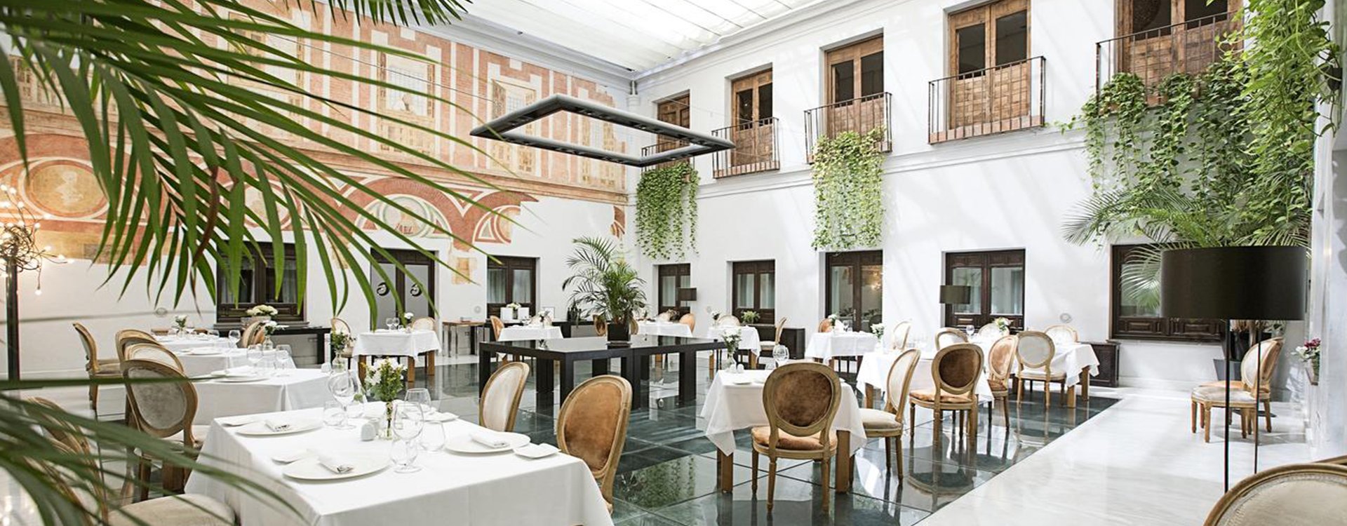 The restaurant serves traditional Andalusian cuisine. For an extra-level experience, dine in the courtyard suspended over a transparent floor covering the remains of a Roman villa.