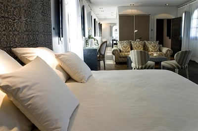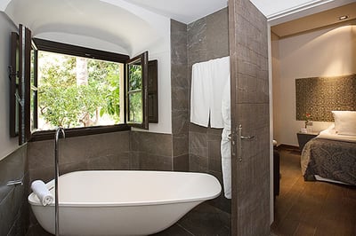 The guestrooms and suites ooze sophistication, with handpainted stucco, elaborate frescoes, velvet headboards, and plush fabrics. With their spacious living area and en suite with freestanding tub and walk-in shower, the junior suites are very special.