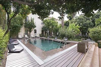 The Palacio del Bailio sits on a quiet street above Cordoba’s old town. The style overwhelms you from the start. You arrive at reception through an old carriage entrance, before passing through a set of patios, each more outstanding than the last. The historic premises and original features are offset by contemporary touches such as Philippe Starck-style baroque chandeliers and velvet sofas, which gives this hotel a very unique and special feel.