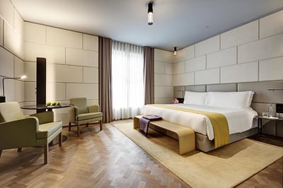 Boasting a unique location in London, UK, slightly separated from the hub of luxury hotels congregating around Mayfair and Knightsbridge, Hotel Café Royal on Regent Street is surrounded by thriving locales and renowned sights such as Covent Garden, Buckingham Palace, the National Museum, and the Houses of Parliament. The hotel itself has eclectic appeal, with the grand restaurants and public areas offset by the striking, chic minimalism of the guest rooms.