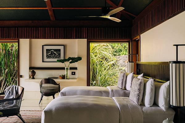 Four Classic Suites is a modern retreat with a private terrace and twin daybeds overlooking the Indian Ocean or resort gardens. These suites feature a king-size bed on terrazzo floors, and three out of four have a private plunge pool. Some Classic Suites offer interconnecting options, allowing flexible family sleeping arrangements through shared entrances between two suites.