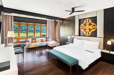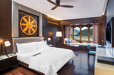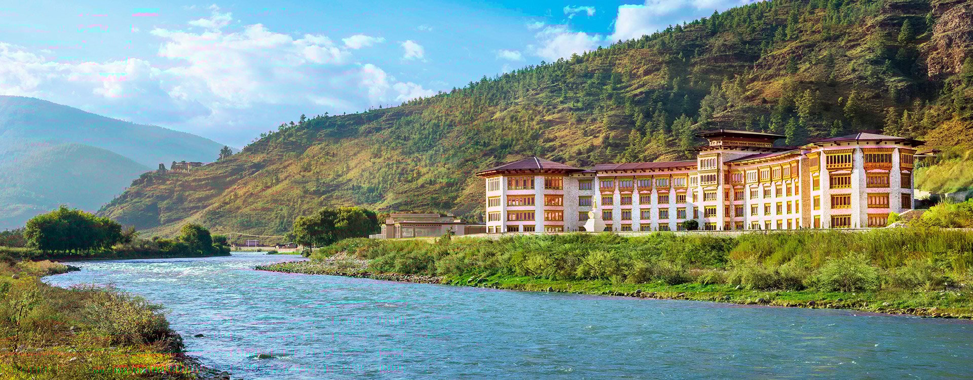 “Le Meridien is a nice hotel situated along the river about ten minutes from the centre of Paro in Bhutan. For this reason the location is entirely relaxing, yet also close to the monasteries, temples and markets. The guestrooms and suites are sophisticated with polished wooden panelling, crisp white bedding, and en suite with shower and bathtub. Other facilities include an indoor heated pool and gym, and a spa with steam room and sauna.”