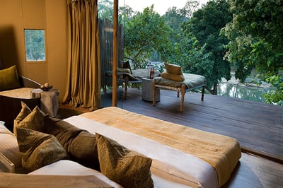 Having stayed at most of the safari lodges in Central India, what I really like about Banjaar Tola is that each guest suite is well shaded by high quality canvas and elevated on timber plinths for sweeping views of the Banjaar River and surrounding sal forest. Inside, the luxurious tents have been designed with pressed bamboo wall panels, bamboo floors, and locally crafted furniture for a very relaxing and authentic feel.