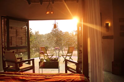 This premier safari lodge occupies a peaceful setting on the banks of Banjaar River, so it’s the perfect hideaway for nature enthusiasts. Naturally constructed, the property brings a sense of peace and authenticity, as do the yoga and Ayurvedic spa treatments which can be enjoyed after a morning game drive. The restaurant serves both vegetarian and non-vegetarian fare, so no one goes hungry.