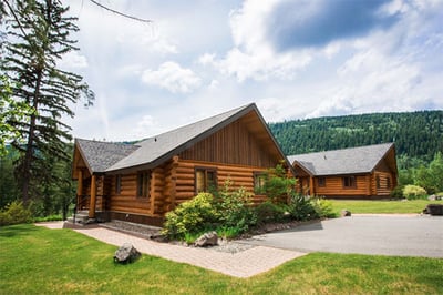 The resort offers 29 architect-designed log cabins, as well as RV sites and glamping tents. The simple cabins have large outdoor decks with alpine views, en suites with bath and shower combinations, comfortable living and dining areas, and fully equipped kitchenettes, while the larger cabins have full kitchens.