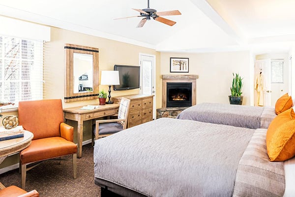 Tenaya Lodge has over 300 guestrooms, suites, and cottages, along with some new two-bed Explorer cabins opening in summer 2019. The comfortable rooms have simple, rustic décor with seating areas and writing desks. The cottages and cabins offer privacy for families and groups and private outdoor seating areas.