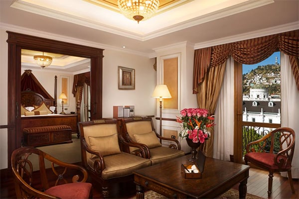 The 15 Spanish colonial-style suites at this luxury boutique hotel are the height of sophistication and offer all the splendor of a bygone era. Royal Suites are designed with exclusive decor and feature a jacuzzi in the bathroom. Plaza View Suites are slightly more spacious with a dining table in the room, with splendid views of The Plaza de la Independencia, The Panecillo, The Cathedral, The Government Palace, and historic buildings that light up the city centER at night. For maximum indulgence, the opulent Presidential Suite boasts a separate living and dining room, kitchen, and two balconies with superb views overlooking the square.