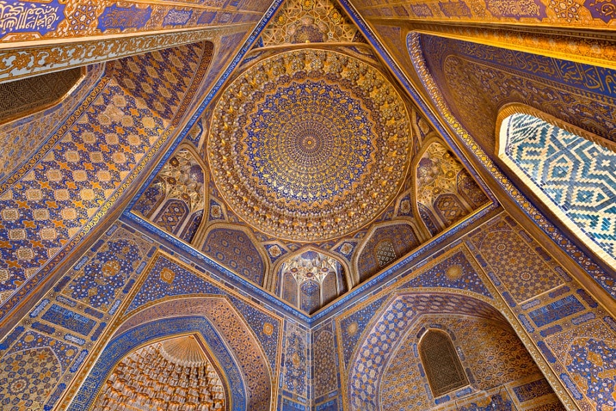 The Registan in Uzbekistan is undoubtedly the most magnificent monument I’ve seen in Central Asia. The locals call it the eighth wonder of the world. The sheer size of the three Madrassas and their facades that are covered with brick and tile geometric, floral and mosaic designs makes it one of the most impressive squares in the world.