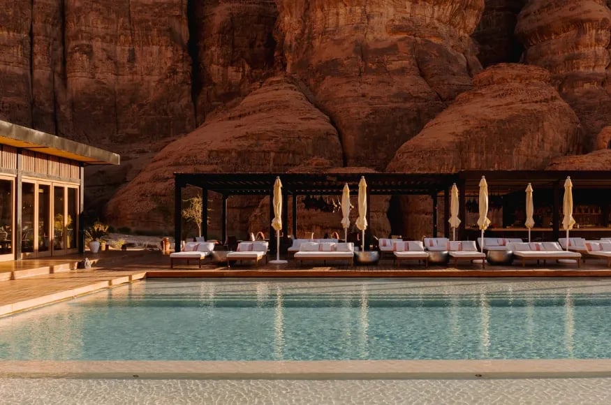 Habitas AlUla, Saudi Arabia – Tucked between towering sandstone cliffs, Habitas AlUla brings a warm, understated feel to this extraordinary desert landscape. Mornings start with yoga on your deck or a walk through the date palm oasis; evenings are for live music around the fire.