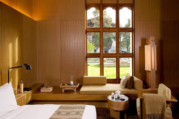 “Amankora Bumthangis is a property in Bhutan that goes above and beyond. Expect impeccable service and lots of R&R in this peaceful escape from reality. Each suite features a traditional Bukhari, king-size bed, terrazzo-clad bath, shower, twin vanities and daybed overlooking the courtyard, Wangdichholing Palace and monastery.”
