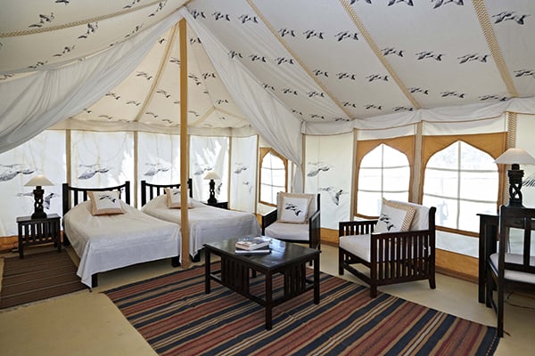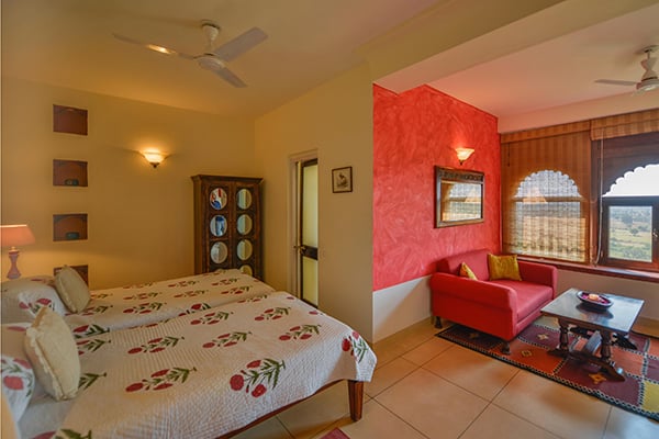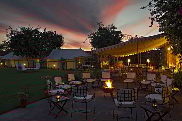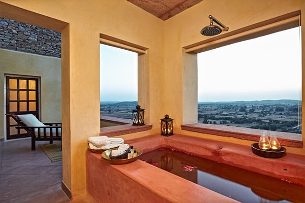 A world away from the chaos of urban India, this property within a 350-year-old fort has amazing views and offers an insight into rural Rajasthan. Staying here is impossibly romantic; think fading grandeur and tumbling bougainvillea-covered walls, outdoor bathrooms and atmospheric lanterns. Go all out and enjoy an outdoor candlelit bath from your Luxury Suite.